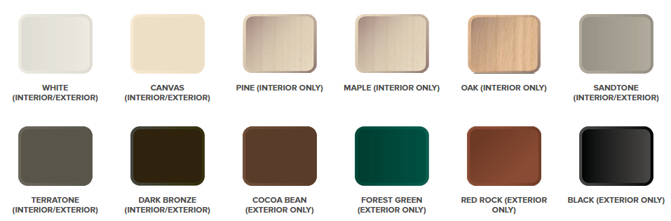 Match or complement the colors of your home with our window color options. Choose the same color for both the interior and exterior, or select any exterior color with a stainable wood, white or canvas interior. Our colors will not flake, rust, blister, peel, crack, pit or corrode, making troublesome maintenance a thing of the past. See the limited warranty for details.