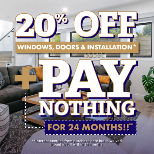 *Offer expires 2/8/26 and may not be combined with other offers or prior purchases or prior estimates. Discount applied by retailer representative at time of contract execution and requires a minimum purchase of six or more windows and/or doors. Promotional offer also available without financing option. **Subject to credit approval. 24-month Promo Period when no payments are due and interest accrues but is waived if balance is paid in full before Promo Period expires. Any unpaid balance owed after Promo Period plus accrued interest will be paid in installments based on terms disclosed in the financing agreement. Financing is provided by various financial institutions without regard to age, race, color, religion, national origin, gender, or familial status. “Renewal by Andersen” and all other marks where denoted are marks of Andersen Corporation. ©2026 Andersen Corporation. All rights reserved.